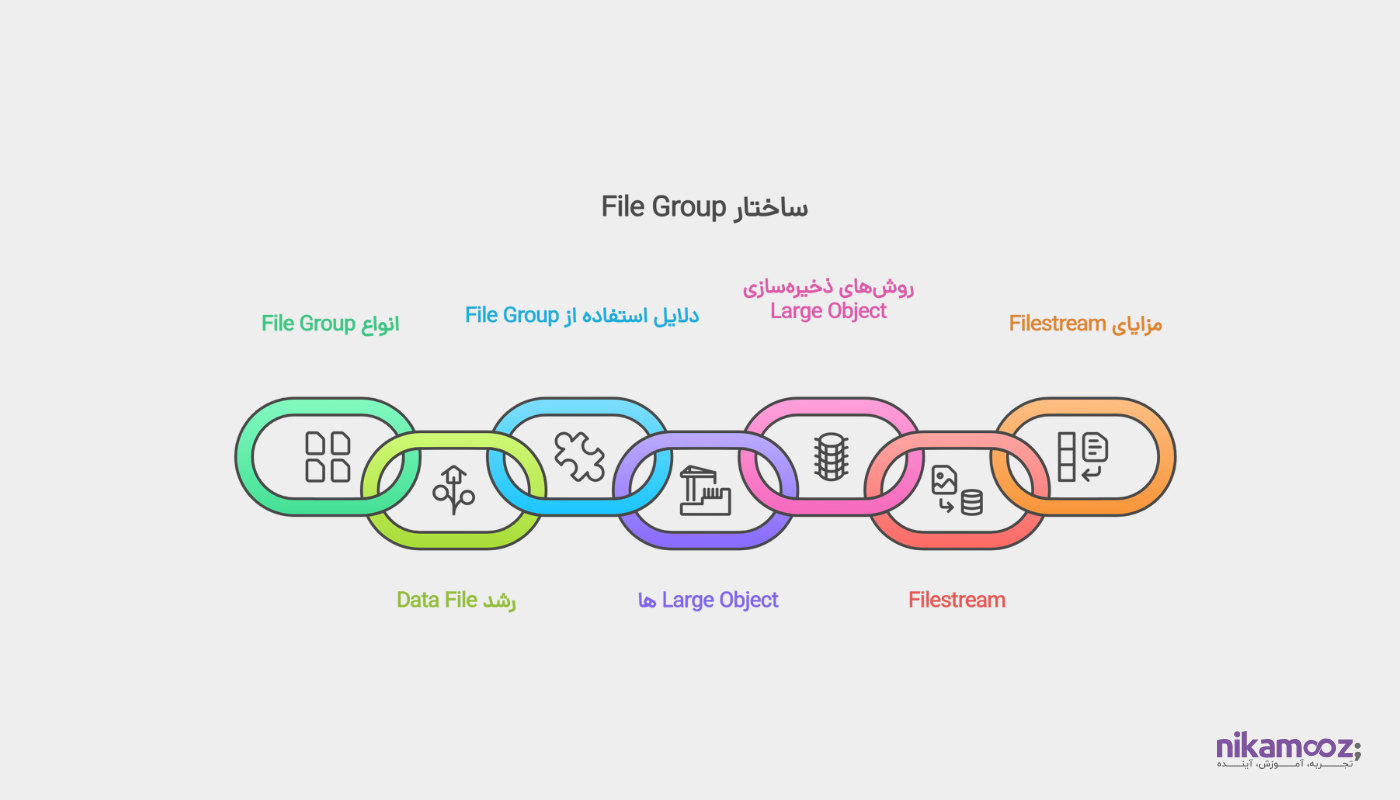 ▪️ FileGroup چیست؟ ▪️ بررسی انـواع FileGroup ▪️ بررسی نحوه رشــد Data File ها ▪️ بررسی دلایل استفاده از File Group ▪️ بررسی Large Object ها ▪️ روشهای ذخیرهسازی Large Object ها ▪️ آشنایی با Filestream ▪️ مزایای استفاده از Filestream