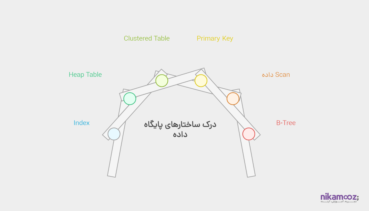 ▪️ بررسی ساختارهای ذخیرهسازی ▪️ Heap Table چیست؟ ▪️ مزایای و معایب استفاده از Heap Table ▪️ Index چیست؟ ▪️ بررسی انواع Index ها در SQL Server ▪️ بررسی مفهوم Scan کردن دادهها ▪️ B-Tree چیست؟ ▪️ Clustered Table چیست؟ ▪️ Primary Key و Clustered Index ▪️ نحوه استفاده از Clustered Index ▪️ مقایسه جداول Heap و Clustered ▪️ حل و ارائه تمرینهای کاربردی