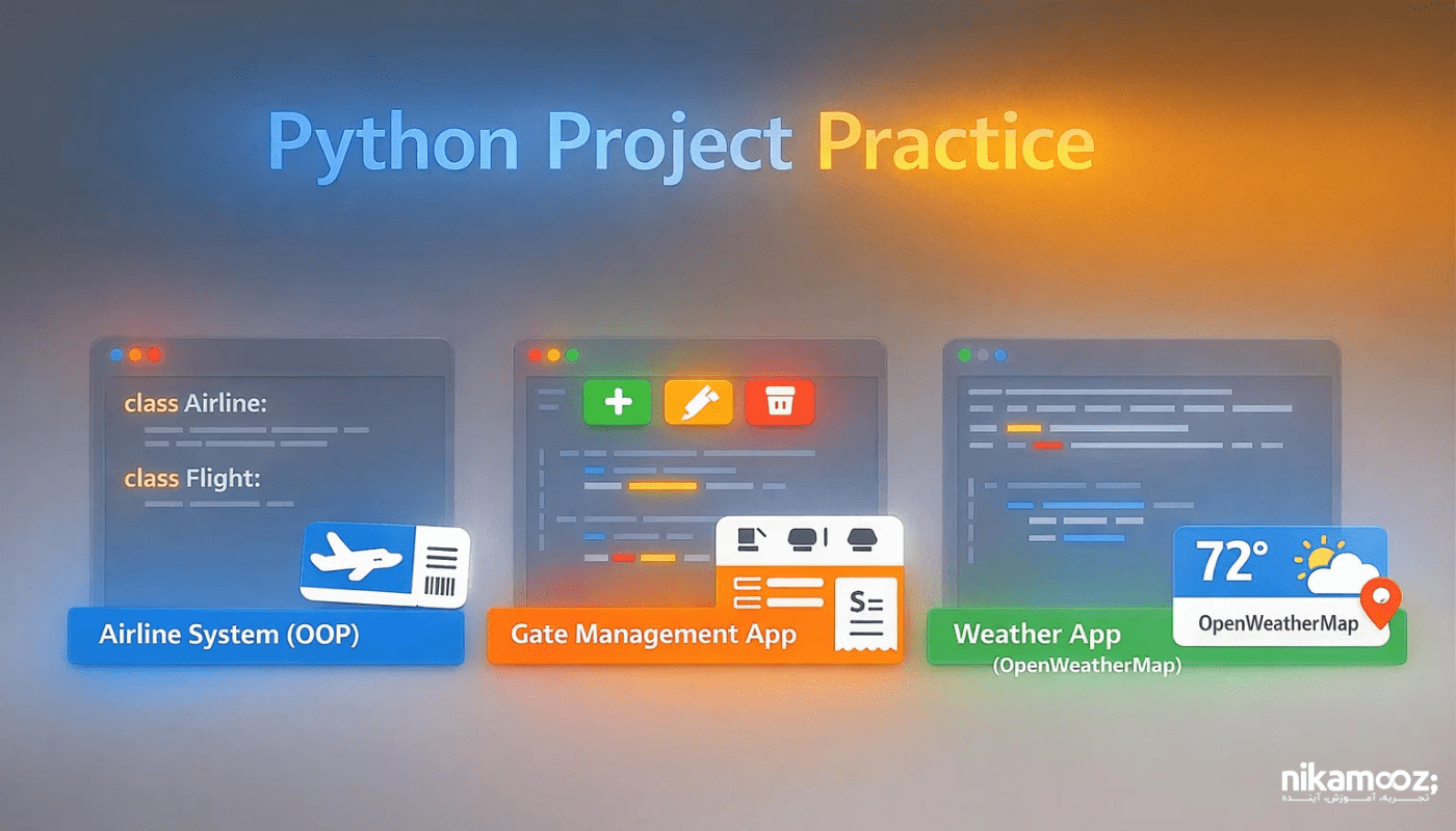 ۱. پیاده سازی یک ایرلاین با استفاده از مفهوم شی گرایی به کمک زبان پایتون 2. پیاده سازی یک اپلیکیشن مدیریت کافه 3. ساخت یک اپلیکیشن آب و هوا با استفاده از سایت Open weather map