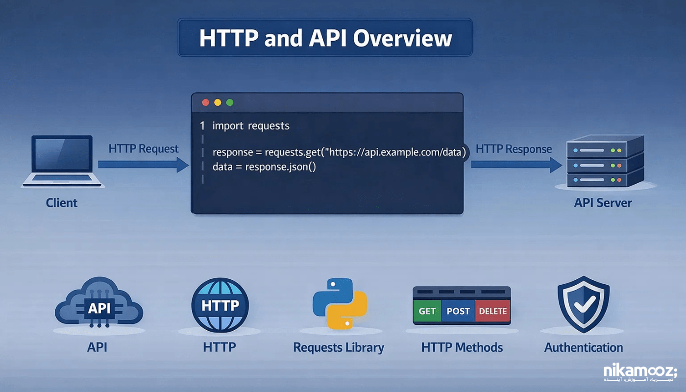 ▪️ API چیست؟ ▪️ HTTP چیست؟ ▪️ معرفی کتابخانه Requests Library و راهاندازی آن ▪️ معرفی و کار با انواع درخواستهای HTTP ▪️ معرفی API های معروف ▪️ استفاده از توکنها و احراز هویت ▪️ ارائه مثالها و تمرینهای کاربردی