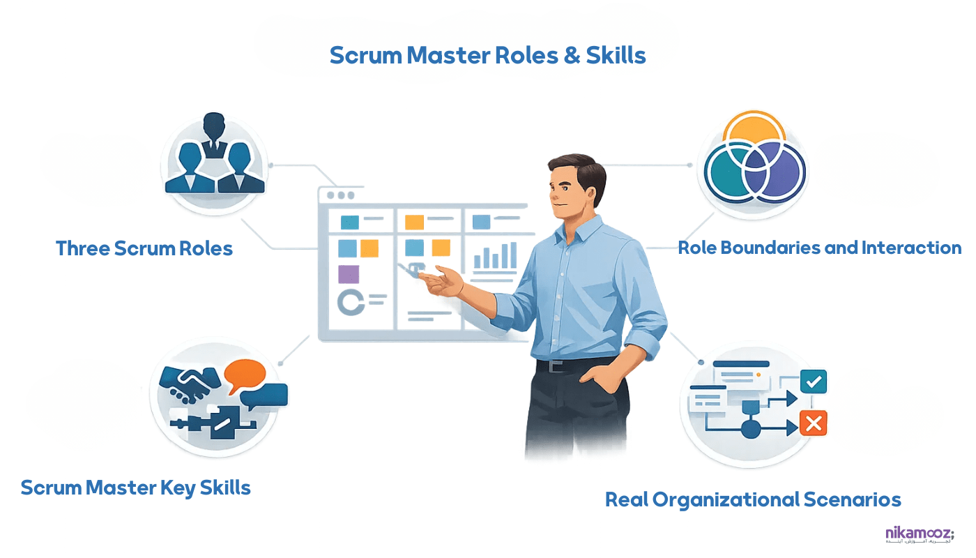 دوره اسکرام مستر مقدماتی، راه ورود ساده و عملی به دنیای چابک (Agile) در مهندسی نرمافزار است؛ جایی که یاد میگیرید چطور به عنوان اسکرام مستر، تیمهای نرمافزاری رو هدایت کنید، موانع رو برطرف کنید و پروژهها رو سریع و باکیفیت تحویل دهید؛ بدون پیشنیاز پیچیده، از مفاهیم پایه تا اجرای یک پروژه واقعی. مناسب تازهکارها، مدیران پروژه یا هر کسی که میخواهد شغل پردرآمد اسکرام مستری (در ایران یا خارج) را شروع کند.