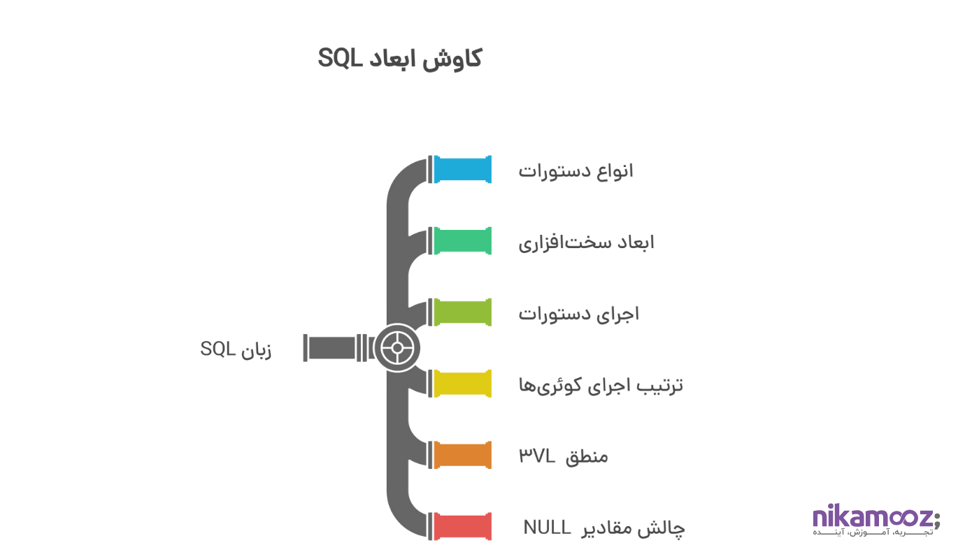 ▪️ بررسی انواع دستورات زبـان SQL ▪️ بررسی ابعاد سختافزاری تأثیرگذار بر یک کوئری ▪️ دستورات SQL چگونه اجـرا میشود؟ ▪️ بررسی ترتیب اجرای کوئریها ▪️ بررسی منطق 3VL ▪️ بررسی چالش مقادیر NULL با مفهوم 3VL در SQL Server