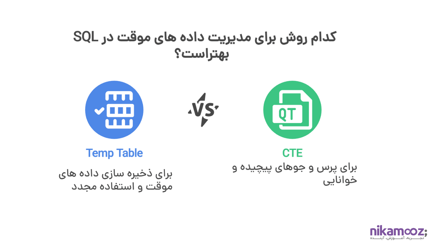 ▪️ Temporary Table چیست؟ ▪️ تفاوت میان Temp Table و CTE ▪️ آشنایی با CTE و نکات مربوط به آن ▪️ حل و ارائه مسائل کاربردی