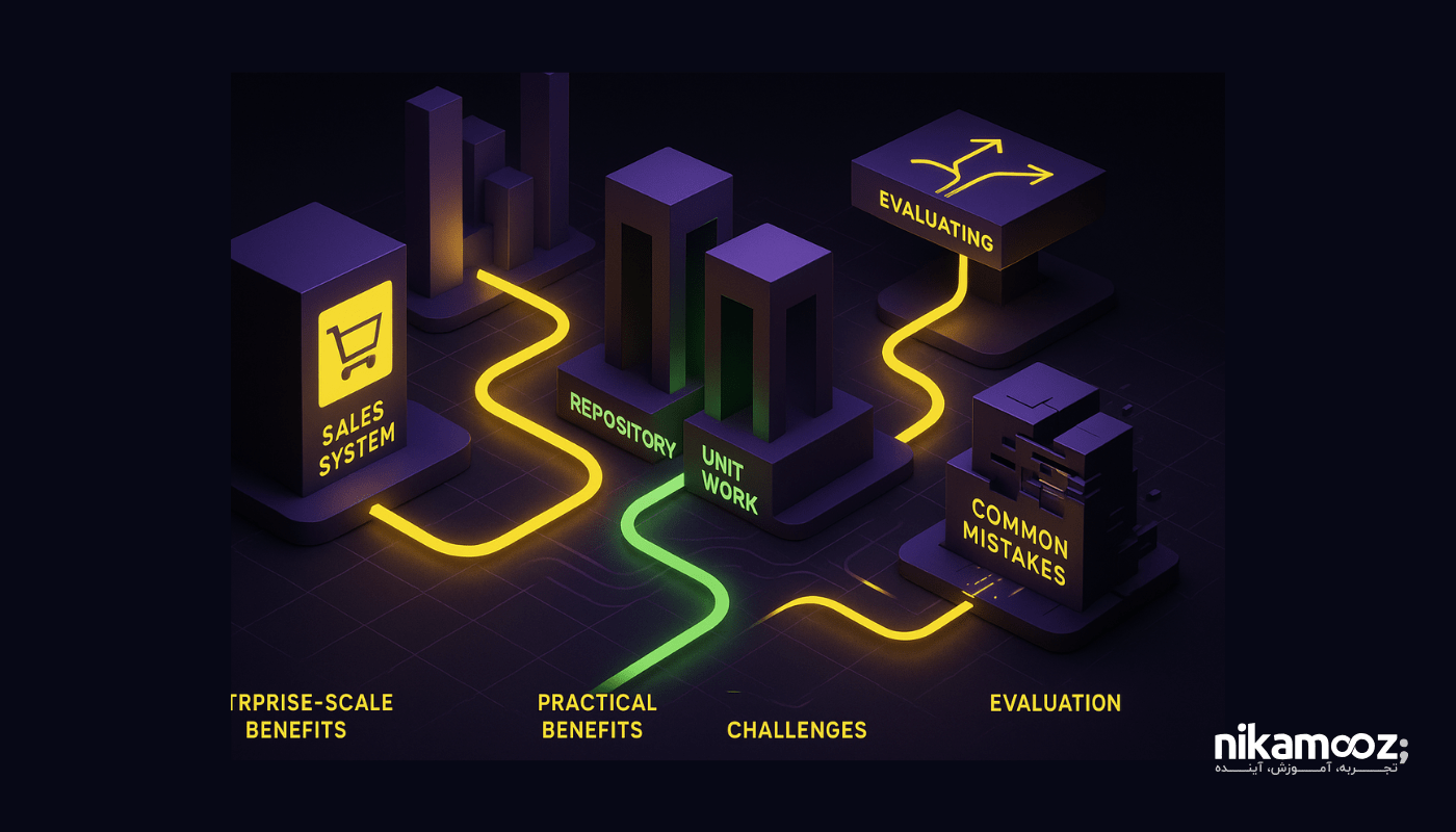 نیک آموز > وبلاگ > زبان های برنامه نویسی > Repository و Unit of Work در Infrastructure Layer: الگوها، مزایا و خطاهای رایج Repository و Unit of Work در Infrastructure Layer: الگوها، مزایا و خطاهای رایج زبان های برنامه نویسی نوشته شده توسط: رضا تجری تاریخ انتشار: ۲۷ آبان ۱۴۰۴ آخرین بروزرسانی: 01 آذر 1404 زمان مطالعه: 20 دقیقه ۰ (۰) Repository Pattern در لایهٔ Infrastructure: در برنامههای مقیاس پایینتر، اغلب منطق دسترسی به دیتابیس مستقیماً داخل سرویسها یا کنترلرها نوشته میشود. مثلاً: var products = await _dbContext.Products.ToListAsync(); این روش در ابتدا ساده و قابلفهم است، اما وقتی سیستم رشد میکند، به چند مشکل جدی برمیخوریم: هر بخش از سیستم خودش به شکل متفاوتی با دیتابیس کار میکند. تستپذیری بسیار سخت میشود (بهویژه بدون دیتابیس واقعی). اگر روزی ORM یا ساختار دیتابیس تغییر کند، باید دهها کلاس را بازنویسی کنیم. اینها همان «مشکل اصلی در دسترسی به دادهها» هستند که در پروژههای واقعی خودشان را نشان میدهند و ضرورت استفاده از الگوهایی مثل Repository و Unit of Work را پررنگ میکنند. مثالی از انباردار شرکت برای Repository Pattern فرض کنید در یک شرکت بزرگ، هر دپارتمان مستقیم به انبار میرفت تا خودش کالاها را بردارد، اضافه کند یا حذف کند! نتیجه چنین فرایندی بهم ریختگی بوجود میاورد: بعضی اقلام گم میشدند، بعضی دوبار ثبت میشدند، و به سختی موجودی واقعی مشخص میباشد؛ برای حل این مشکل، شرکت تصمیم میگیرد یک انباردار مرکزی استخدام کند. همهی درخواستها باید از طریق او انجام شود: او میداند چطور کالاها را بگیرد، ثبت کند، یا حذف کند، بدون اینکه بخشهای دیگر بدانند داخل انبار دقیقاً چه خبر است. در معماری نرمافزار، Repository همان انباردار دادهها است؛ دسترسی به پایگاهداده را متمرکز میکند و لایههای بالاتر (مثل Domain یا Application) را از جزییات ORM جدا میسازد. مفهوم فنی Repository چیست؟ Repository یک الگوی طراحی (Design Pattern) است که: وظیفه دارد بین دامنه (Domain) و منبع داده (Data Source) نقش واسطه ایفا کند. منطق CRUD و Queryها را در خودش نگه دارد. باعث میشود لایههای دیگر تنها با انتزاع (abstraction)کار کنند نه با EF Core ،SQL یا MongoDB. به بیان ساده: Repository = لایهای که دادهها را مدیریت میکند، نه به این خاطر که SQL بلد است، بلکه چون میداند دادههای دامنه چیست و چطور باید با آنها کار کرد. مشاهده کامل ترین وجامع ترین آموزش برنامه نویسی ساختار کلی در لایهٔ Infrastructure در معماری تمیز (Clean Architecture) معمولاً ساختار به این شکل است: Application/ └── Interfaces/ └── IProductRepository.cs Domain/ └── Entities/ └── Product.cs Infrastructure/ └── Persistence/ ├── AppDbContext.cs └── Repositories/ ├── BaseRepository.cs └── ProductRepository.cs مراحل پیادهسازی لایهٔ Infrastructure ۱. تعریف یک اینترفیس عمومی (Base Contract) public interface IRepository<T> where T : class { Task<T?> GetByIdAsync(Guid id); Task<IEnumerable<T>> GetAllAsync(); Task AddAsync(T entity); void Update(T entity); void Remove(T entity); } این همان قرارداد پایه بین لایهٔ Application و Infrastructure است. لایههای بالاتر فقط میدانند که چنین متدهایی وجود دارد؛ نه اینکه از EF Core استفاده میشود یا از Dapper.گاهی وقت ها بسته به موارد پروژه مدل های ریپازیتوری را می توان بهمراه فیلتر کردن هایی به سمت دیتابیس به صورت جنریک تعریف کرد. ۲. ساخت Base Repository در Infrastructure public class BaseRepository<T> : IRepository<T> where T : class { protected readonly AppDbContext _context; public BaseRepository(AppDbContext context) { _context = context; } public async Task<T?> GetByIdAsync(Guid id) => await _context.Set<T>().FindAsync(id); public async Task<IEnumerable<T>> GetAllAsync() => await _context.Set<T>().ToListAsync(); public async Task AddAsync(T entity) => await _context.Set<T>().AddAsync(entity); public void Update(T entity) => _context.Set<T>().Update(entity); public void Remove(T entity) => _context.Set<T>().Remove(entity); } در اینجا، BaseRepository نقش همان انباردار اصلی شرکت را دارد؛او میداند چطور عملیات پایه را انجام دهد، اما جزئیات محصول خاصی را نمیداند. ۳. ارثبری برای ریپازیتوریهای خاص دامنه public interface IProductRepository : IRepository<Product> { Task<IEnumerable<Product>> GetAvailableProductsAsync(); } public class ProductRepository : BaseRepository<Product>, IProductRepository { public ProductRepository(AppDbContext context) : base(context) { } public async Task<IEnumerable<Product>> GetAvailableProductsAsy