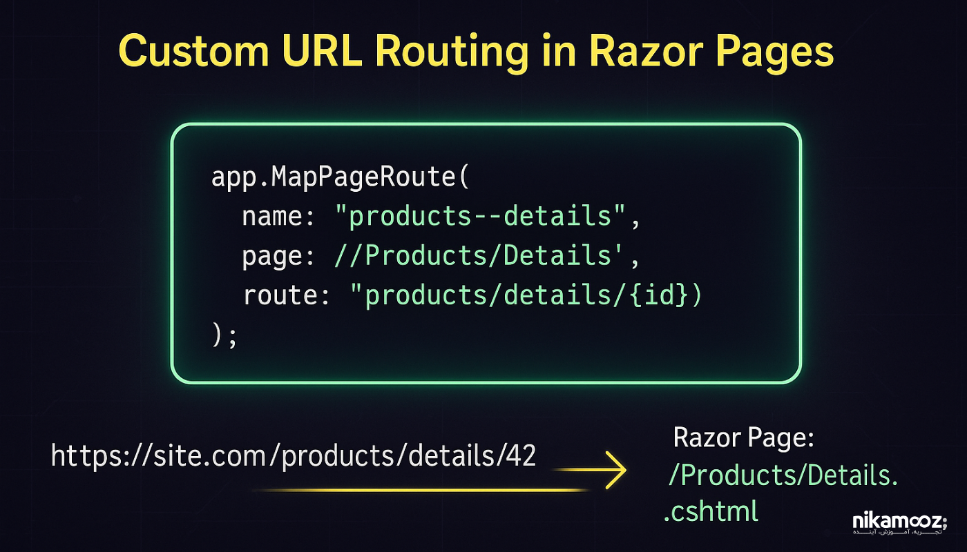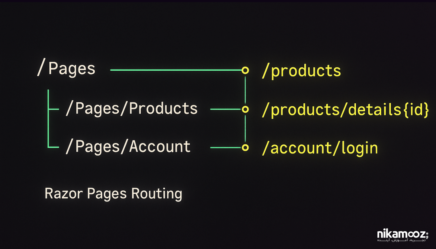 نیک آموز > وبلاگ > زبان های برنامه نویسی > مسیریابی در Razor Pages: از مفاهیم پایه تا پیادهسازی مسیریابی در Razor Pages: از مفاهیم پایه تا پیادهسازی زبان های برنامه نویسی نوشته شده توسط: تیم فنی نیک آموز تاریخ انتشار: ۰۴ آبان ۱۴۰۴ آخرین بروزرسانی: 04 آبان 1404 زمان مطالعه: دقیقه ۰ (۰) در وب مدرن، آدرس فقط یک متن در مرورگر نیست؛ آدرس در واقع همان چیزی است که باید مستقیماً به منطق درست در سمت سرور هدایت شود. دراین مقاله از نیک آموز کاربر انتظار دارد چیزی شبیه /product/123 را وارد کند و فوراً مشخصات محصول ۱۲۳ را ببیند. اما داخل برنامه چه اتفاقی باید بیفتد؟ درخواست کاربر باید به صفحه درستی برسد، شناسه را بگیرد، از دیتابیس بخواند و خروجی مناسب را برگرداند. این مسئله همان جایی است که مسیریابی وارد بازی میشود. مسیریابی در Razor Pages را میتوان مثل سیستم پستی یک شهر بزرگ در نظر گرفت. برنامه وب مثل یک شهر است، پوشههای داخل Pages مثل محلهها هستند و هر Razor Page مثل یک خانه مشخص در آن محله است. URL همان آدرسی است که روی نامه نوشته شده و درخواست HTTP همان نامه است. نقش مسیریابی Razor Pages مثل پستچی است: وظیفهاش این است که هر آدرس را به صاحب درستش برساند. اگر آدرس به صورت /Cars/Details/5 نوشته شده باشد، سیستم باید بداند صفحهی مربوط به جزئیات خودرو کجاست و مقدار ۵ یعنی کدام مورد. هدف Razor Pages این است که این اتصال بین «آدرس خوانا برای انسان» و «منطق واقعی برنامه» نه فقط انجام شود، بلکه قابل پیشبینی، تمیز و قابل نگهداری بماند. مشکل اصلی در مسیریابی وب در روزهای اولیه برنامهنویسی وب، هر URL مستقیماً به یک فایل فیزیکی روی سرور اشاره میکرد. اما با پیچیدهتر شدن برنامهها، این سؤال مطرح شد: چطور میتوان بین آدرسهای خوانا و زیبا برای کاربران و منطق پیچیده برنامهنویسی پشت صحنه ارتباط برقرار کرد؟ مشکل اینجا بود که کاربران آدرسهایی مثل `/product/123` را دوست دارند، در حالی که برنامهنویس نیاز دارد این درخواست به کدی برسد که بتواند محصول با شناسه ۱۲۳ را از دیتابیس بخواند و نمایش دهد. اینجا بود که مفهوم مسیریابی هوشمند (Intelligent Routing) متولد شد. انالوژی یا مقایسه سیستم پستی یک شهر بزرگ فرض کنید یک شهر بزرگ مثل تهران را در نظر بگیرید: اجزای سیستم: شهر: برنامه وب شما محلهها: پوشههای داخل `Pages` خانهها: فایلهای Razor Pages (مثل `Details.cshtml`) نامه: درخواست HTTP کاربر آدرس روی نامه: URL وارد شده در مرورگر پستچی: سیستم مسیریابی Razor Pages نحوه های مختلف مسیریابی: ۱. آدرسدهی استاندارد (قانون پیشفرض) مثال:”تهران، محله اقدسیه، پلاک ۱۲۳” در دنیای وب: آدرس: `/Products/Details/123` مسیر فایل:`Pages/Products/Details.cshtml` توضیح: پستچی میداند مستقیماً به خانه “Details” در محله “Products” برود و شماره پلاک (۱۲۳) را به صاحب خانه تحویل دهد. ۲. آدرسدهی محلهای (صفحات Index) مثال: “تهران، محله اقدسیه” در دنیای وب: آدرس: `/Products` مسیر فایل:`Pages/Products/Index.cshtml` توضیح: پستچی میداند اگر فقط نام محله ذکر شود، باید نامه را به خانه “اصلی” آن محله (Index) برساند. ۳. آدرسدهی سفارشی (مسیرهای دلخواه) مثال: “تهران، فروشگاه مرکزی لوازم خانگی” در دنیای وب: آدرس: `/store/electronics` مسیر فایل: `Pages/Products/Electronics.cshtml` توضیح: گاهی میخواهید آدرسهای کوتاهتر و جذابتری داشته باشید. مسیریابی در Razor Pages: حالتهای مختلف ۱. حالت پیشفرض (Convention-Based Routing) این سادهترین و رایجترین روش است. سیستم به طور خودکار ساختار پوشهها را به URL تبدیل میکند. مثال: سایت فروش خودروهای ایرانی جدیدترین آموزش ASP .NET Core <!-- فایل: Pages/Cars/Domestic/Index.cshtml --> @page <h1>خودروهای داخلی ایران</h1> <ul> <li>پراید - ۵۰ میلیون تومان</li> <li>پژو ۴۰۵ - ۸۰ میلیون تومان</li> <li>دنا - ۱۲۰ میلیون تومان</li> </ul> نتیجه ای که حاصل می شود : آدرس: `/Cars/Domestic` سیستم خودکار میفهمد باید `Pages/Cars/Domestic/Index.cshtml` را نمایش دهد قوانین پیشفرض: `Index.cshtml` → نام پوشه والد `OtherFile.cshtml` → نام پوشه والد + نام فایل `Pages/Index.cshtml` → صفحه اصلی (`/`) ۲. مسیریابی با پارامترهای ساده وقتی نیاز دارید اطلاعات متغیر ا